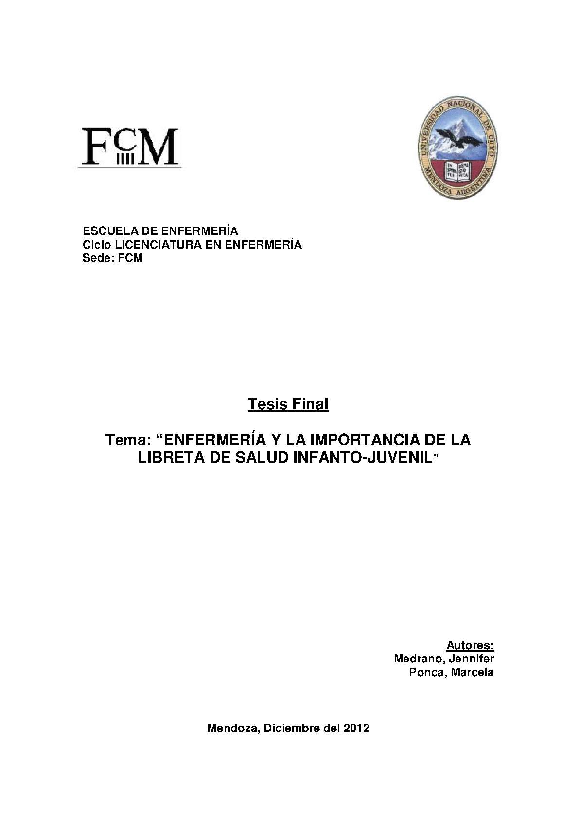 Medrano, Jennifer; Ponca, Marcela. (2012). Enfermería y la importancia de la libreta de salud infanto-juvenil: (Tesina de grado). Mendoza, Universidad Nacional de Cuyo. Facultad de Ciencias Médicas. Escuela de Enfermería..