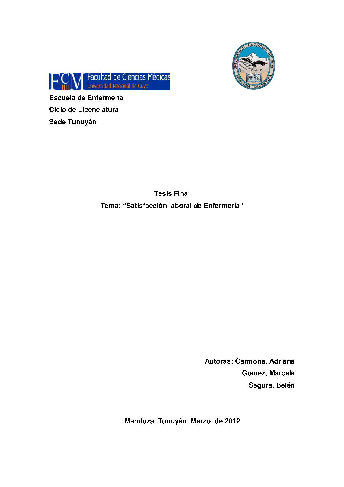 Universidad Nacional de Cuyo. Facultad de Ciencias Médicas. Escuela de Enfermería.