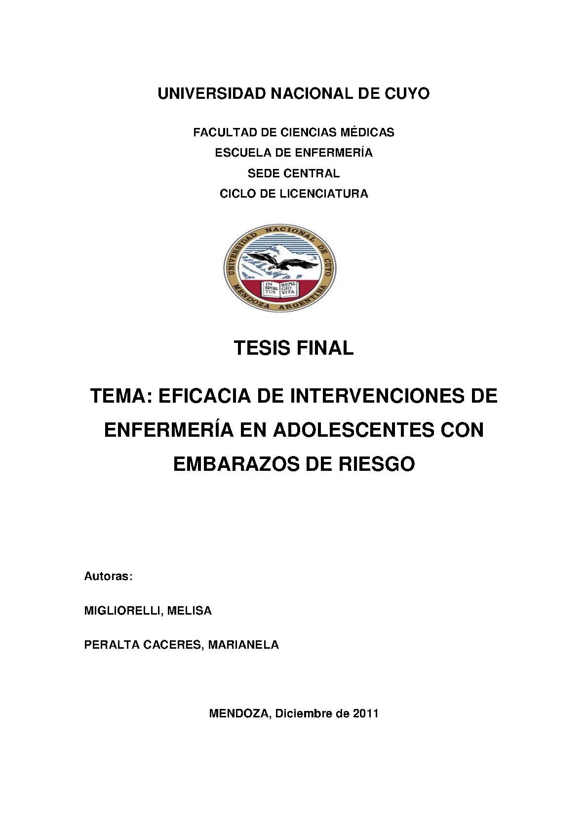 Universidad Nacional de Cuyo. Facultad de Ciencias Médicas. Escuela de Enfermería.