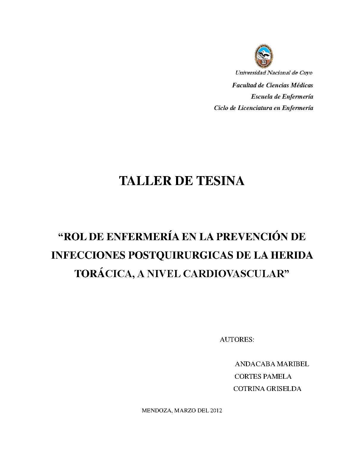 Rol de enfermería en la prevención de infecciones postquirúrgicas de la herida torácica, a nivel cardiovascular