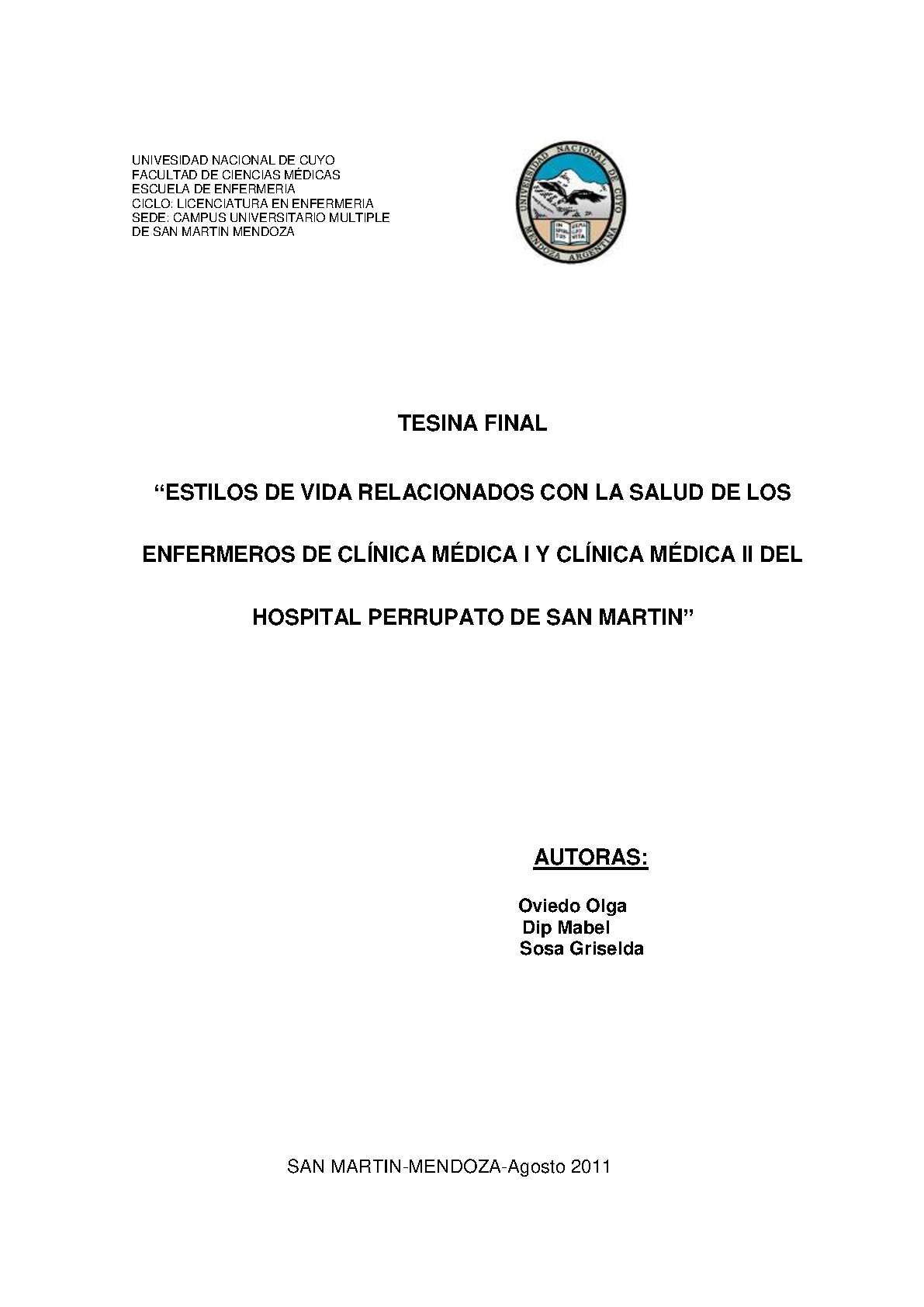 Estilos de vida relacionados con la salud de los enfermeros de Clínica Médica I y Clínica Médica II del Hospital Perrupato de San Martín