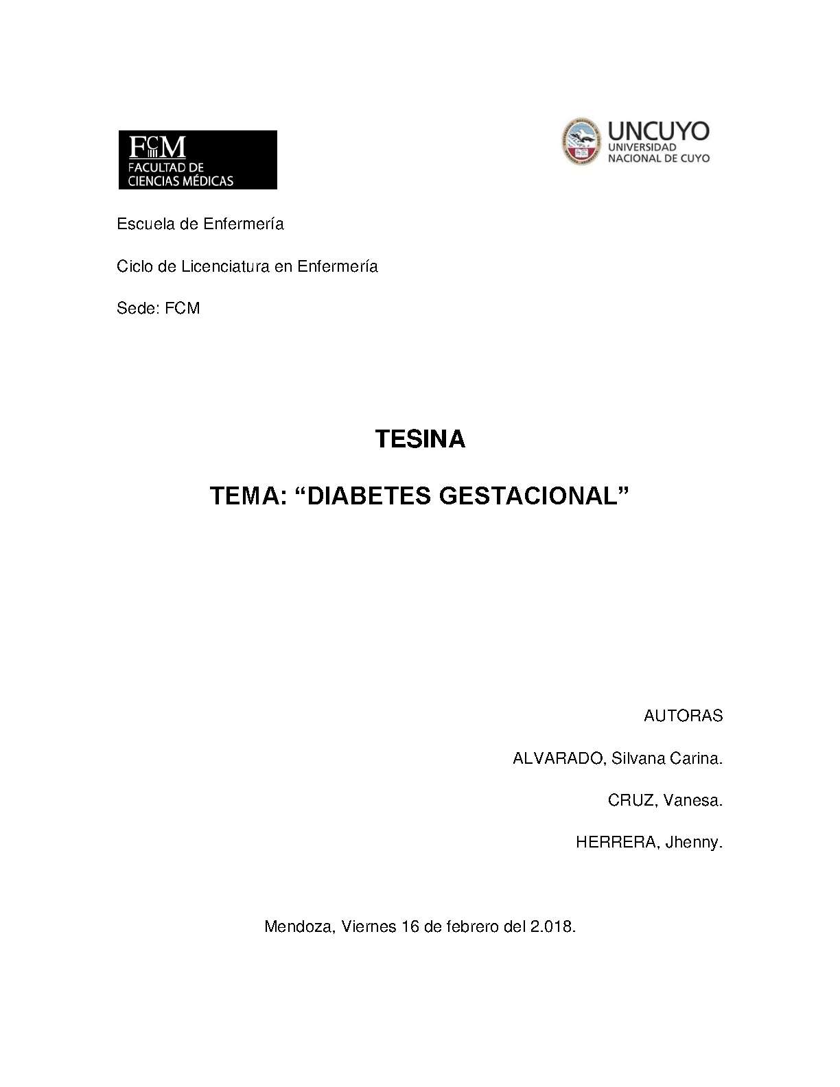 El presente trabajo de investigación se realizó en el 2do piso de maternidad del Hospital Luis Lagomaggiore en la ciudad de Mendoza, Argentina. Se trabajó con 50 mujeres embarazadas, las cuales, estuvieron internadas desde el mes de junio al mes de septiembre del 2017, teniendo como finalidad detectar los conocimientos previos que poseen las embarazadas con diabetes gestacional sobre los riesgos y las complicaciones de su patología.
