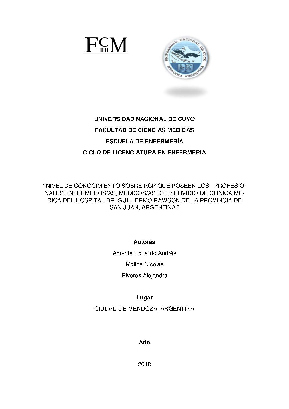 Nivel de conocimiento sobre RCP que poseen los profesionales enfermeros/as, médicos/as del servicio de clínica médica del Hospital Dr. Guillermo Rawson de la provincia de San Juan, Argentina