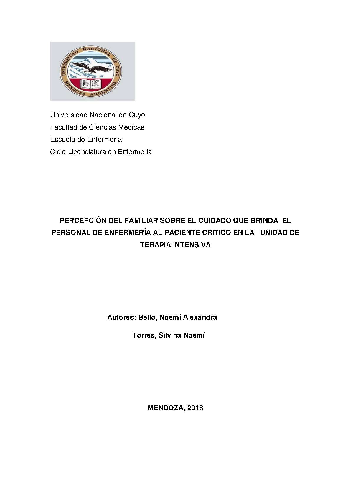 PERSONAL DE ENFERMERÍA - ATENCIÓN DE ENFERMERÍA - ACTITUDES DEL PERSONAL DE SALUD - RELACIONES ENFERMERO-PACIENTE - RELACIONES PROFESIONAL-FAMILIA - CUIDADOS CRÍTICOS - UNIDADES DE CUIDADOS INTENSIVOS - CALIDAD DE LA ATENCIÓN DE SALUD - HOSPITAL POLICLINICO SAN LUIS (SAN LUIS, ARGENTINA)