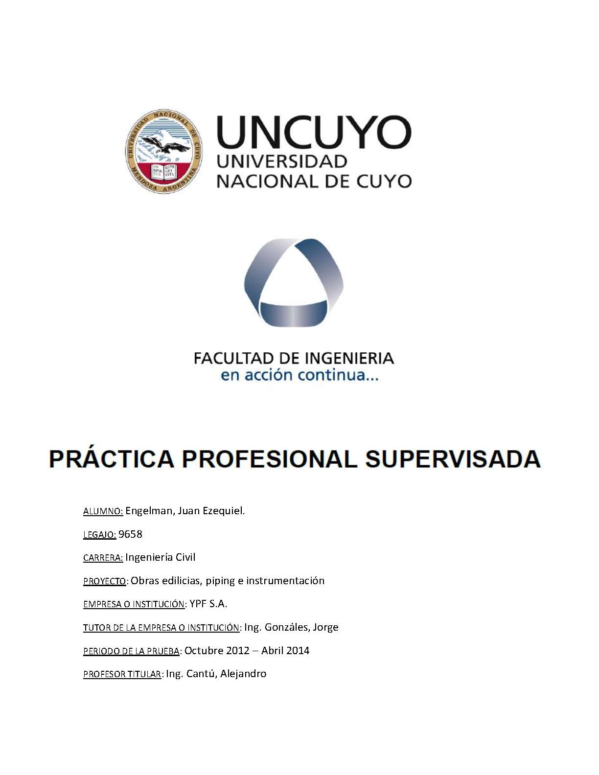Engelman, Juan Ezequiel. (2019). Obras edilicias, piping e instrumentación: (Práctica Profesional Supervisada). Mendoza, Universidad Nacional de Cuyo. Facultad de Ingeniería .