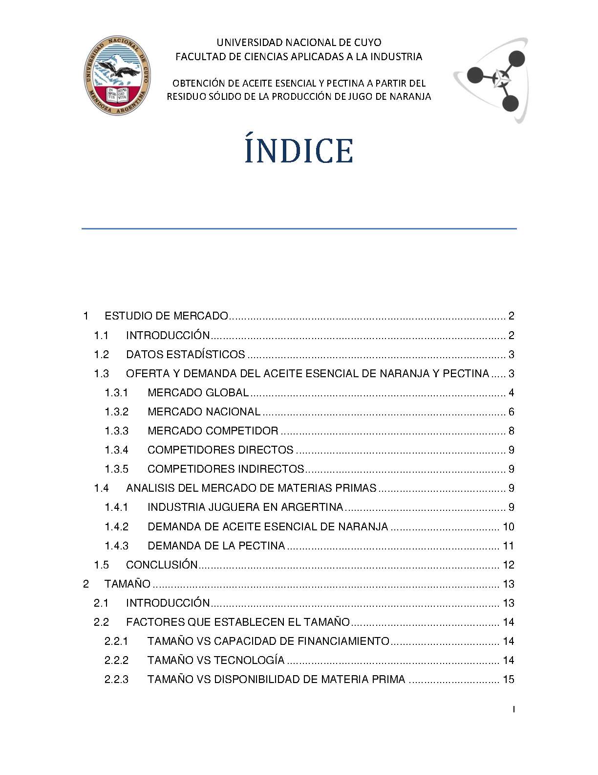 ACEITES ESENCIALES - PECTINAS - NARANJAS - EVALUACIÓN ECONÓMICA - COSTOS DE PRODUCCIÓN - PRODUCCIÓN INDUSTRIAL - FACTORES DE RIESGO - ESTUDIO DE MERCADO - IMPACTO AMBIENTAL