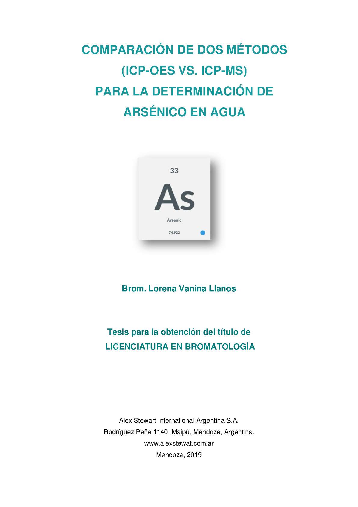 Comparación de dos métodos (ICP-OES VS. ICP-MS) para la determinación de arsénico en agua