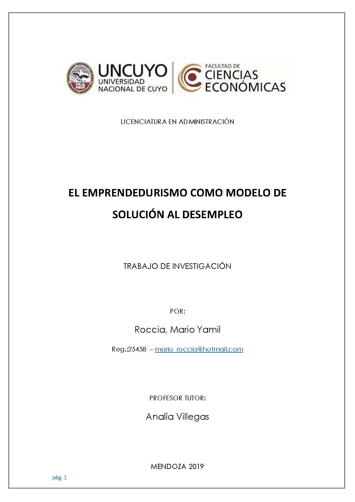 Roccia, Mario Yamil. (2019). El emprendedurismo como modelo de solución al desempleo: (Tesina de grado). Mendoza, Universidad Nacional de Cuyo. Facultad de Ciencias Económicas.