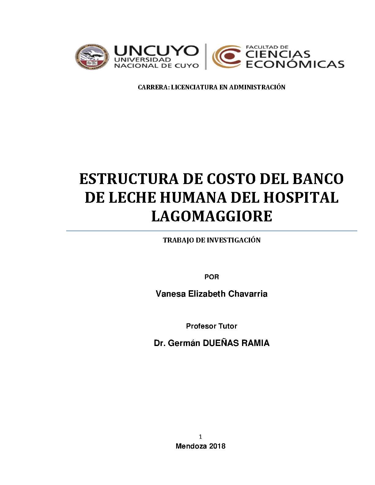 Estructura de costo del banco de leche humana del Hospital Lagomaggiore