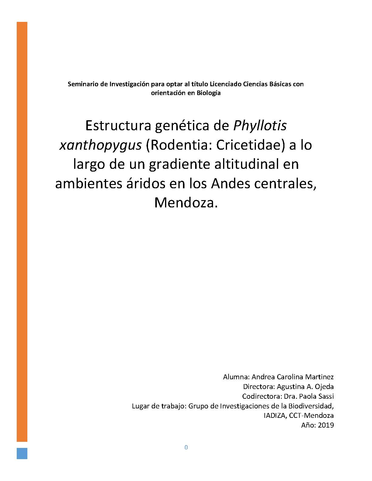 Estructura genética de phyllotis xanthopygus (Rodentia: Cricetidae) a lo largo de un gradiente altitudinal en ambientes áridos en los Andes centrales, Mendoza