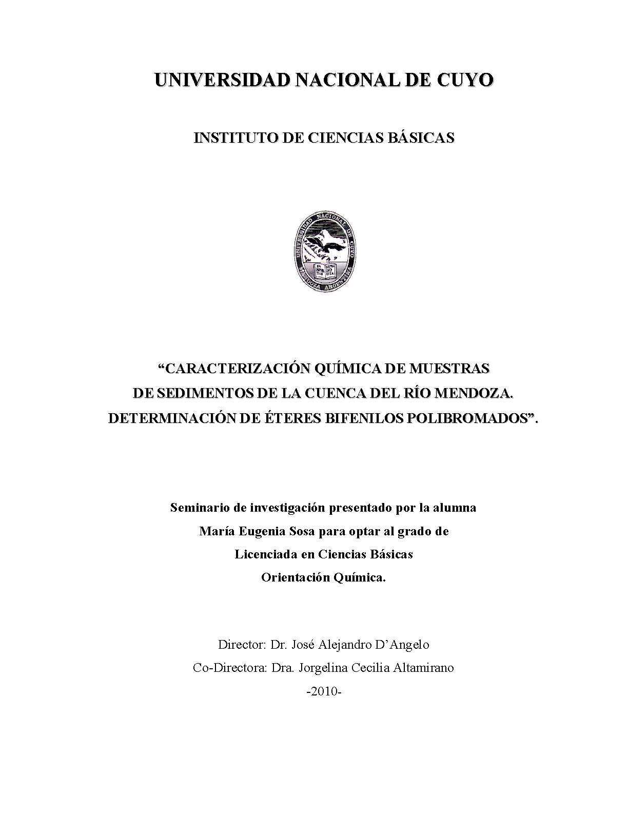El presente trabajo se enfoca en la caracterización química de sedimentos de la cuenca del Rio Mendoza y su correlación con el contenido de compuestos retardadores de fuego polibromados (BFR), específicamente éteres bifenilos policromados (PBDEs).