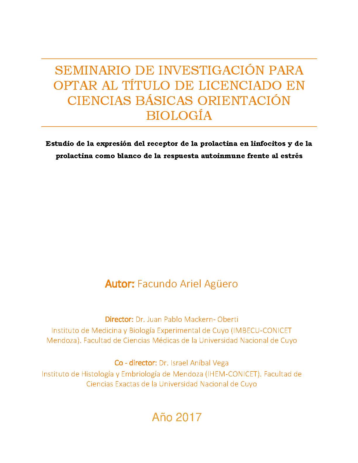 Estudio de la expresión del receptor de la prolactina en linfocitos y de la prolactina como blanco de la respuesta autoinmune frente al estrés