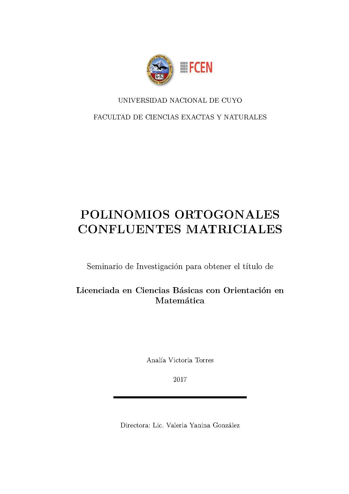 Torres, Analía Victoria . (2017). Polinomios ortogonales confluentes matriciales: (Tesina de grado). Mendoza, Universidad Nacional de Cuyo. Facultad de Ciencias Exactas y Naturales.