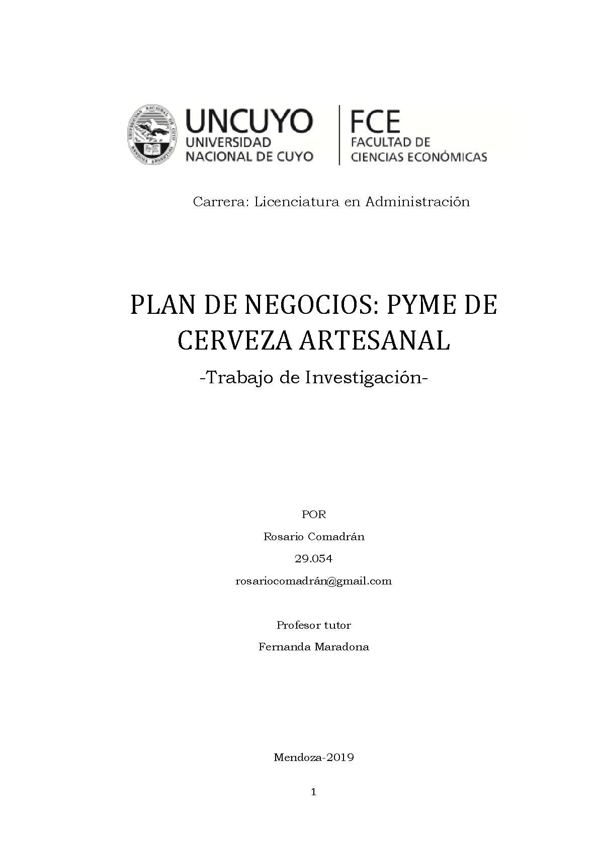 Comadrán, Rosario. (2019). Plan de negocio: PYME de cerveza artesanal (Tesina de grado). Mendoza, Universidad Nacional de Cuyo. Facultad de Ciencias Económicas.