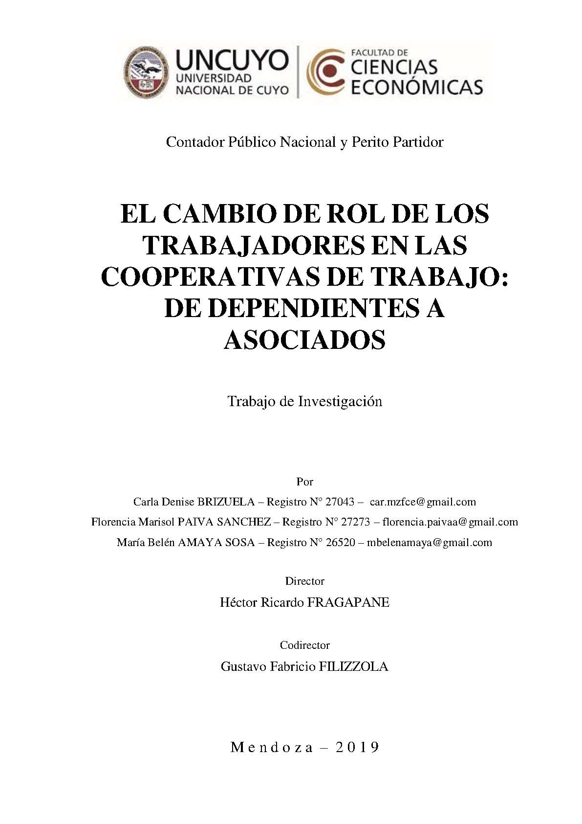 Brizuela, Carla Denise; Paiva Sánchez, Florencia Marisol; Amaya Sosa, María Belén. (2019). El cambio de rol de los trabajadores en las cooperativas de trabajo: de dependientes a asociados (Tesina de grado). Mendoza, Universidad Nacional de Cuyo. Facultad de Ciencias Económicas.