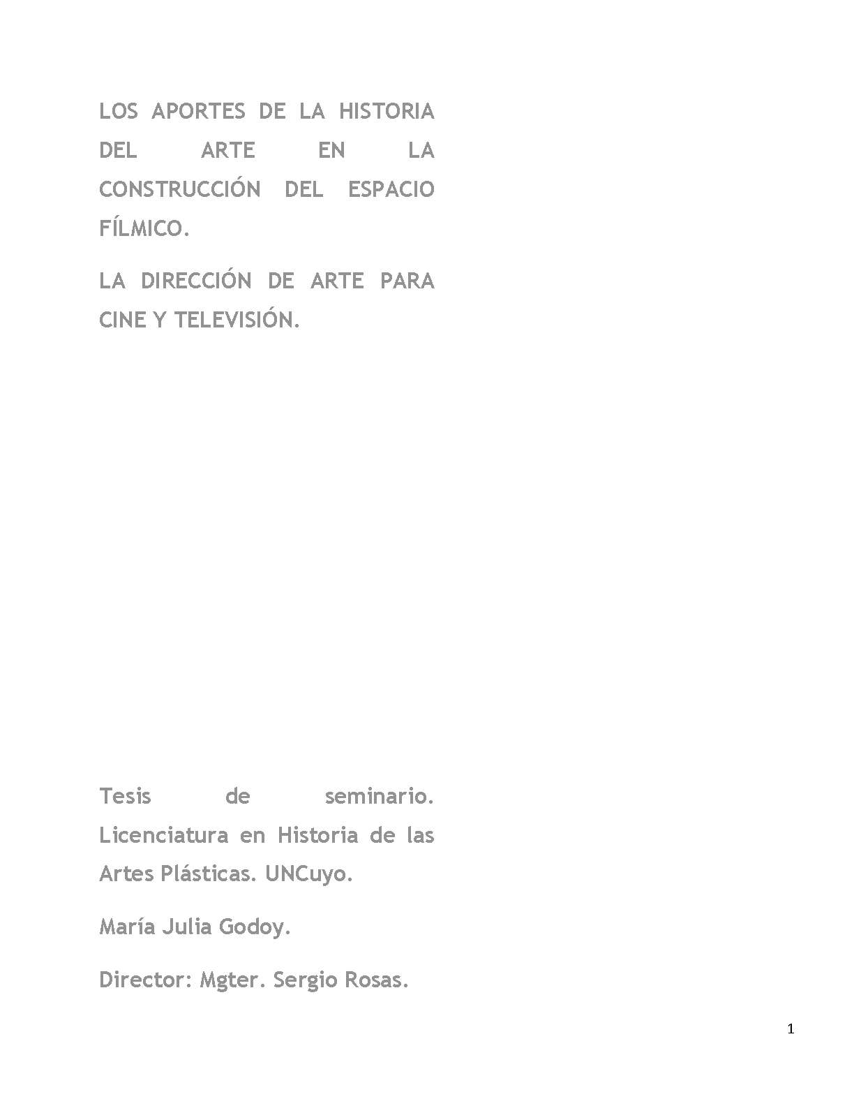 Este trabajo busca establecer cómo la historia del arte, fundamentalmente a través de la pintura, está presente en el cine en sus diversas manifestaciones. Y cómo en algunas áreas específicas, como la dirección de arte, vestuario, costumbres, etc., se pueden hacer aportes desde la formación académica fundamentales para la construcción histórica, pero también estética de la imagen cinematográfica.