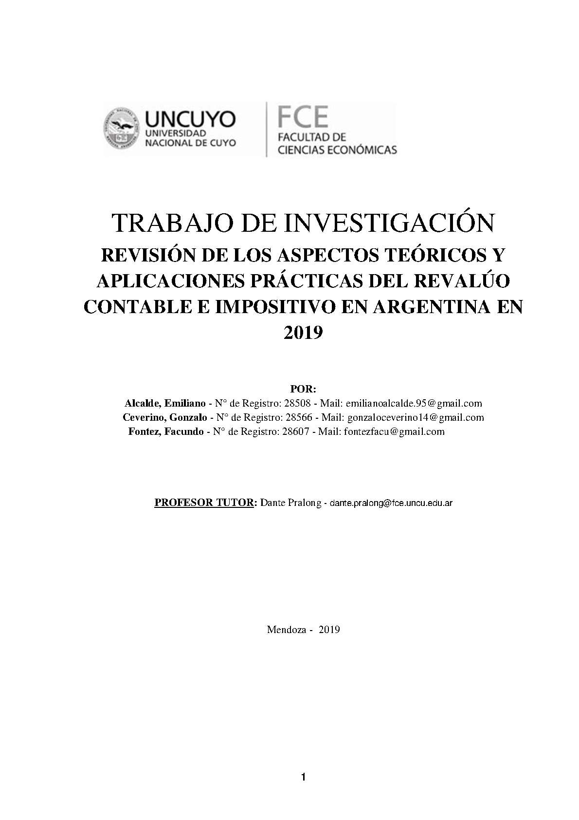 Alcalde, Emiliano; Ceverino, Gonzalo; Fontez, Facundo. (2019). Revisión de los aspectos teóricos y aplicaciones prácticas del revalúo contable e impositivo en Argentina en 2019: (Tesina de grado). Mendoza, Universidad Nacional de Cuyo. Facultad de Ciencias Económicas.
