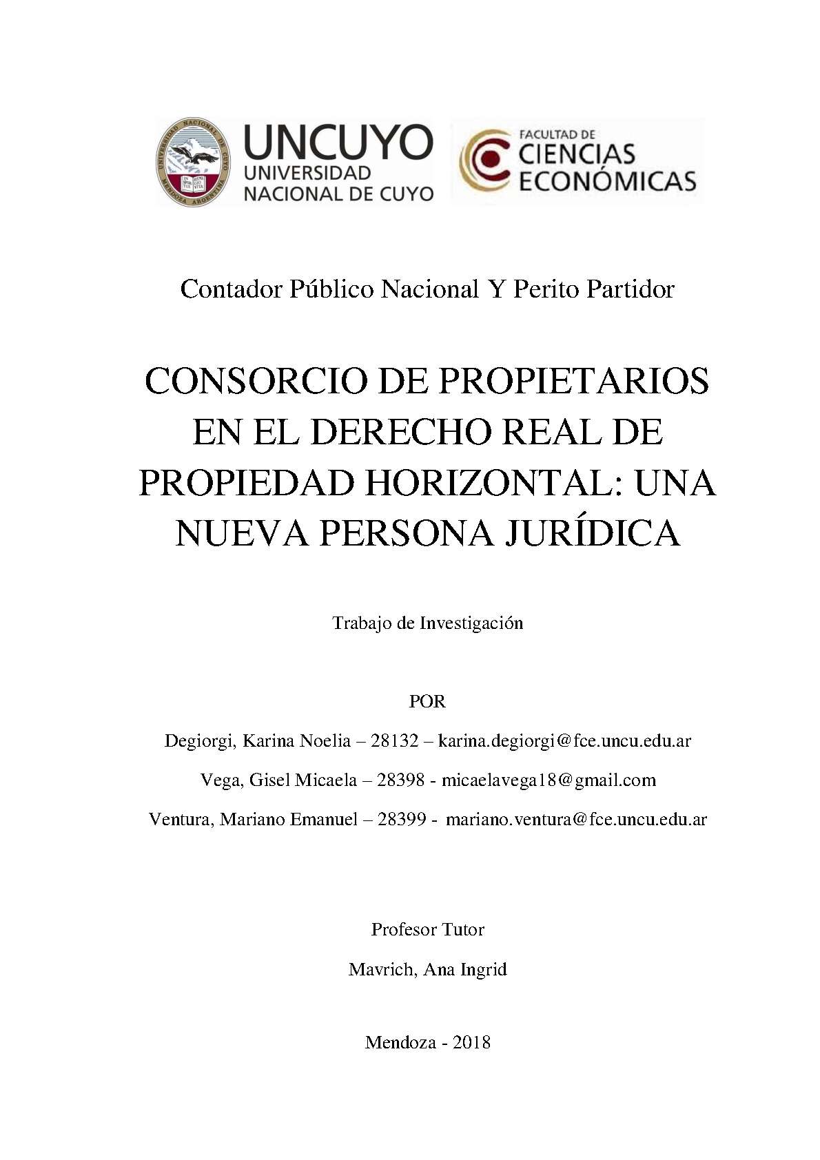 MENDOZA (ARGENTINA) - DERECHOS REALES - PROPIEDAD HORIZONTAL - PERSONAS JURÍDICAS