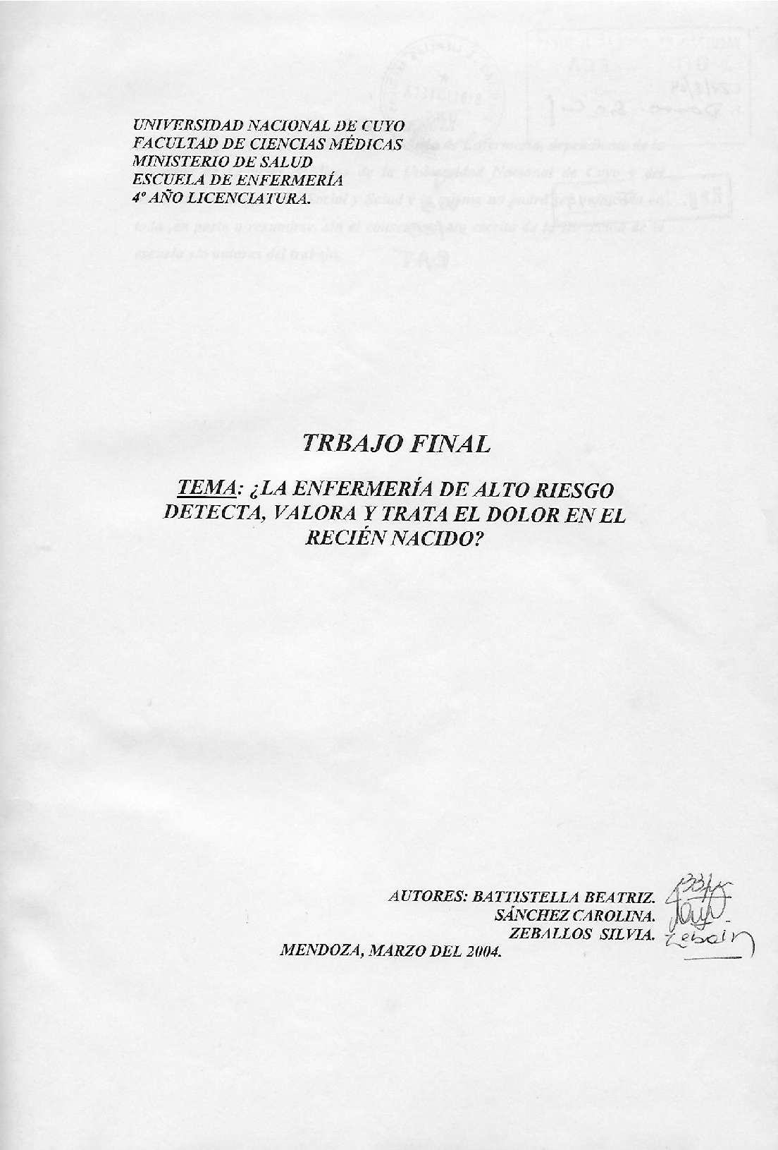 Universidad Nacional de Cuyo. Facultad de Ciencias Médicas. Escuela de Enfermería.