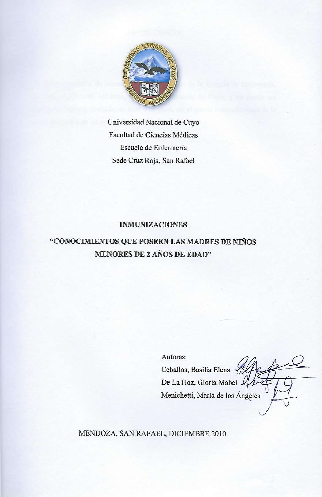 Universidad Nacional de Cuyo. Facultad de Ciencias Médicas. Escuela de Enfermería.