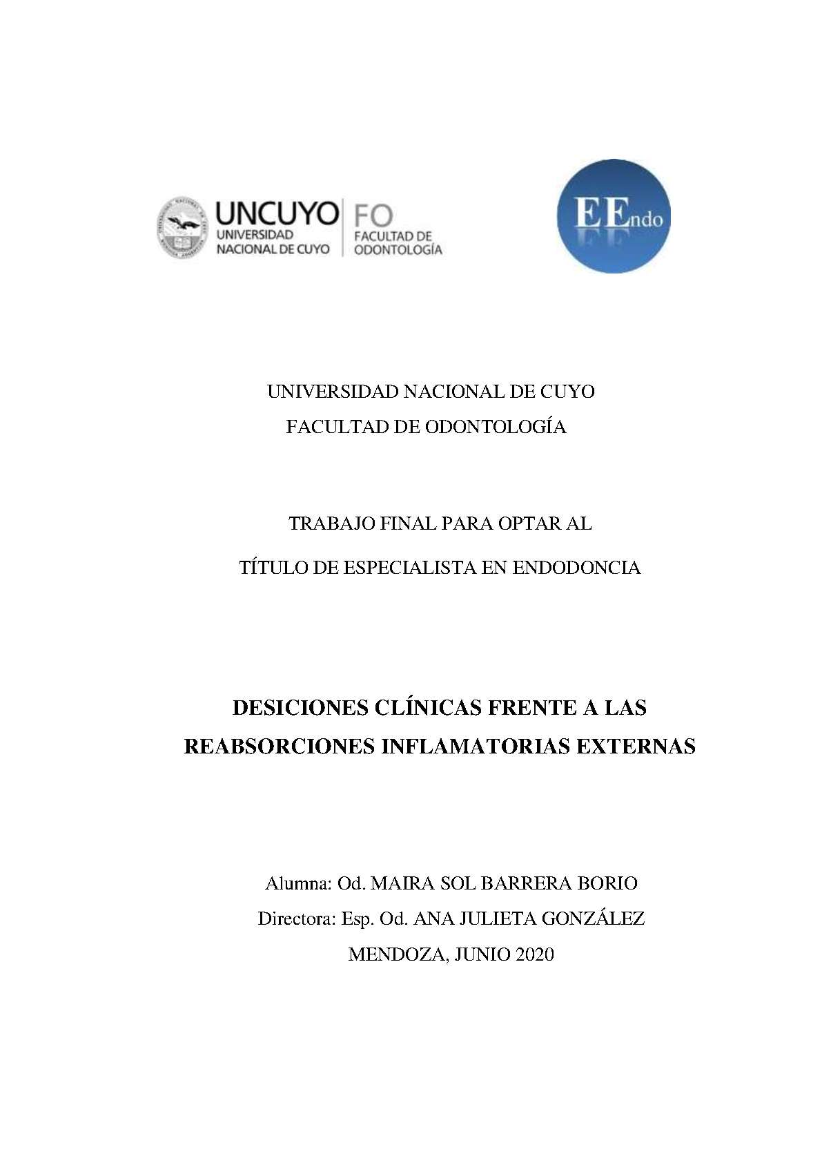 Decisiones clínicas frente a las reabsorciones inflamatorias externas