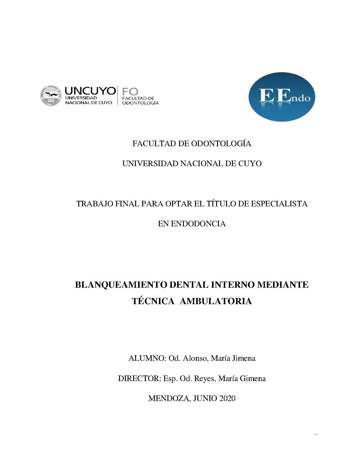 Alonso, María Jimena . (2020). Blanqueamiento dental interno mediante técnica ambulatoria: (Trabajo final de especialización). Mendoza, Universidad Nacional de Cuyo. Facultad de Odontología .