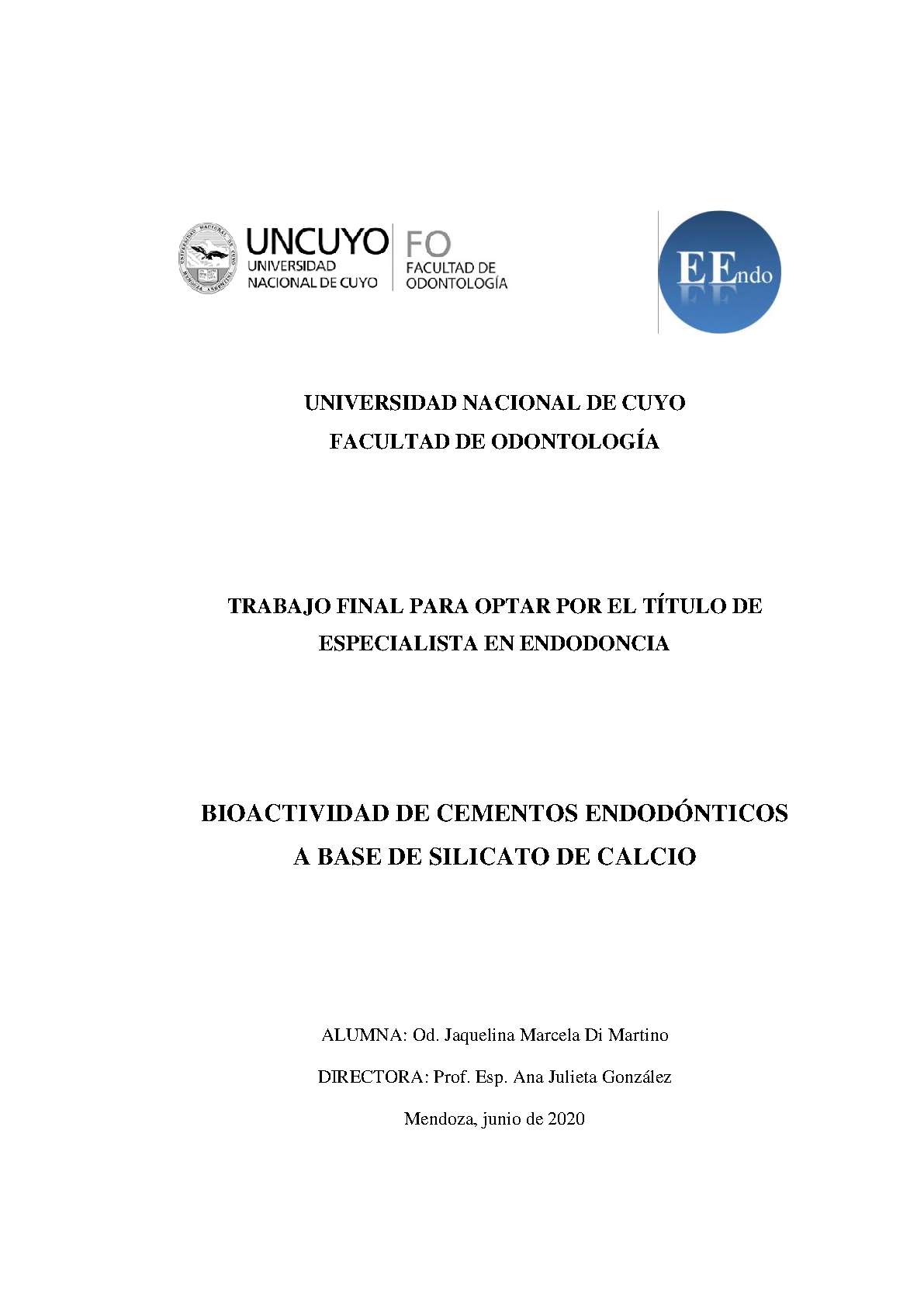 Bioactividad de cementos endodónticos a base de silicato de calcio