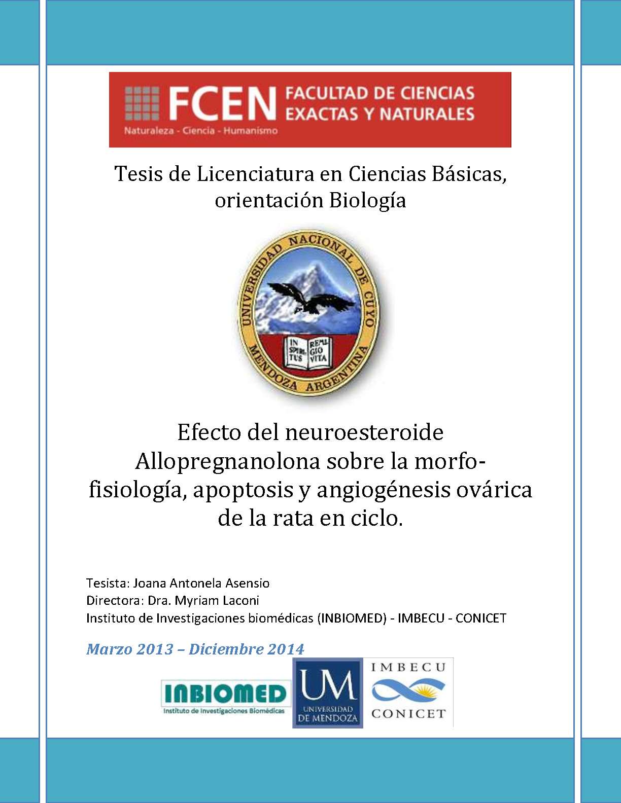 Asensio, Joana Antonela. (2014). Efecto del neuroesteroide allopregnanolona sobre la morfofisiología, apoptosis y angiogénesis ovárica de la rata en ciclo: (Tesina de grado). Mendoza, Universidad Nacional de Cuyo. Facultad de Ciencias Exactas y Naturales.