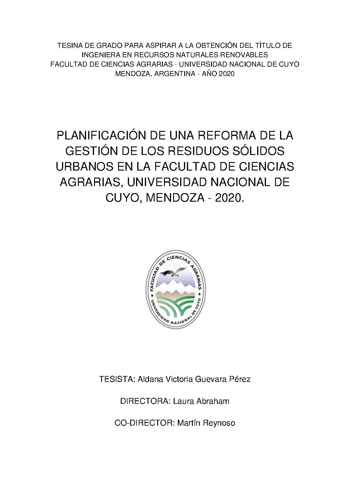 Planificación de una reforma de la gestión de los residuos sólidos urbanos en la Facultad Ciencias Agrarias, Universidad Nacional de Cuyo, Mnedoza - 2020
