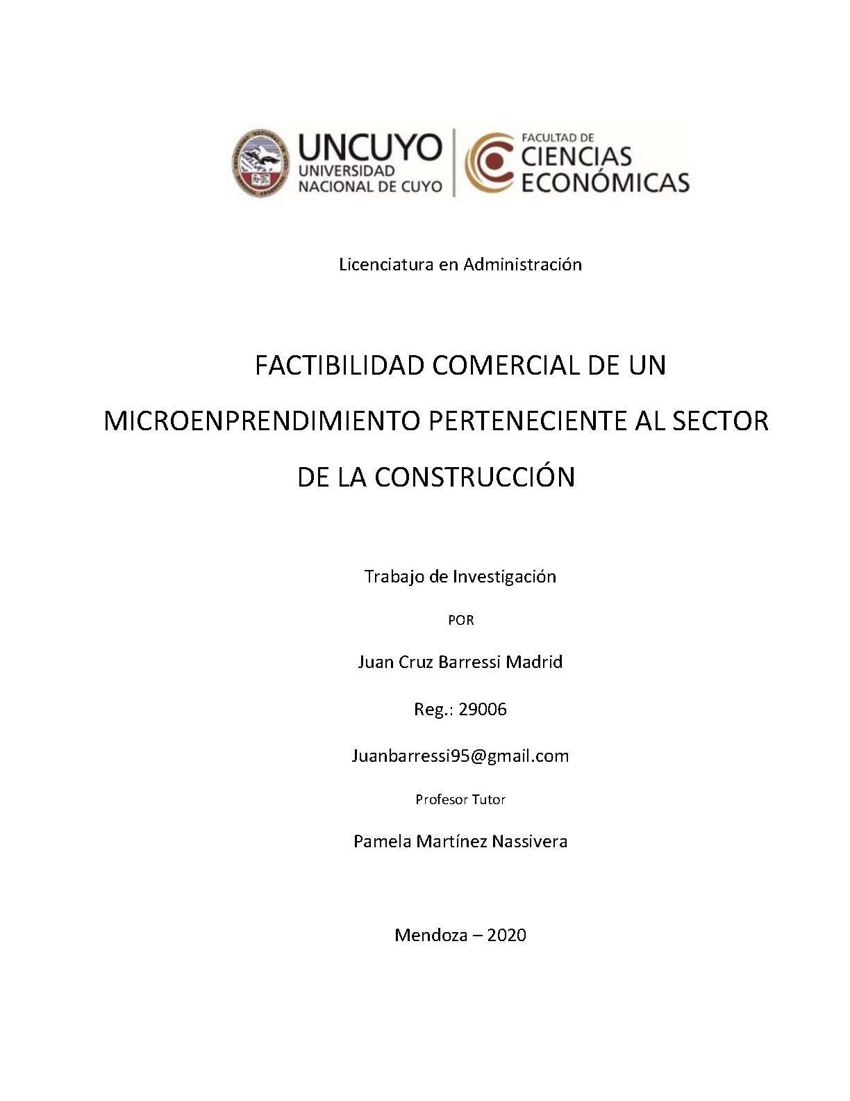 Factibilidad comercial de un microemprendimiento perteneciente al sector de la construcción