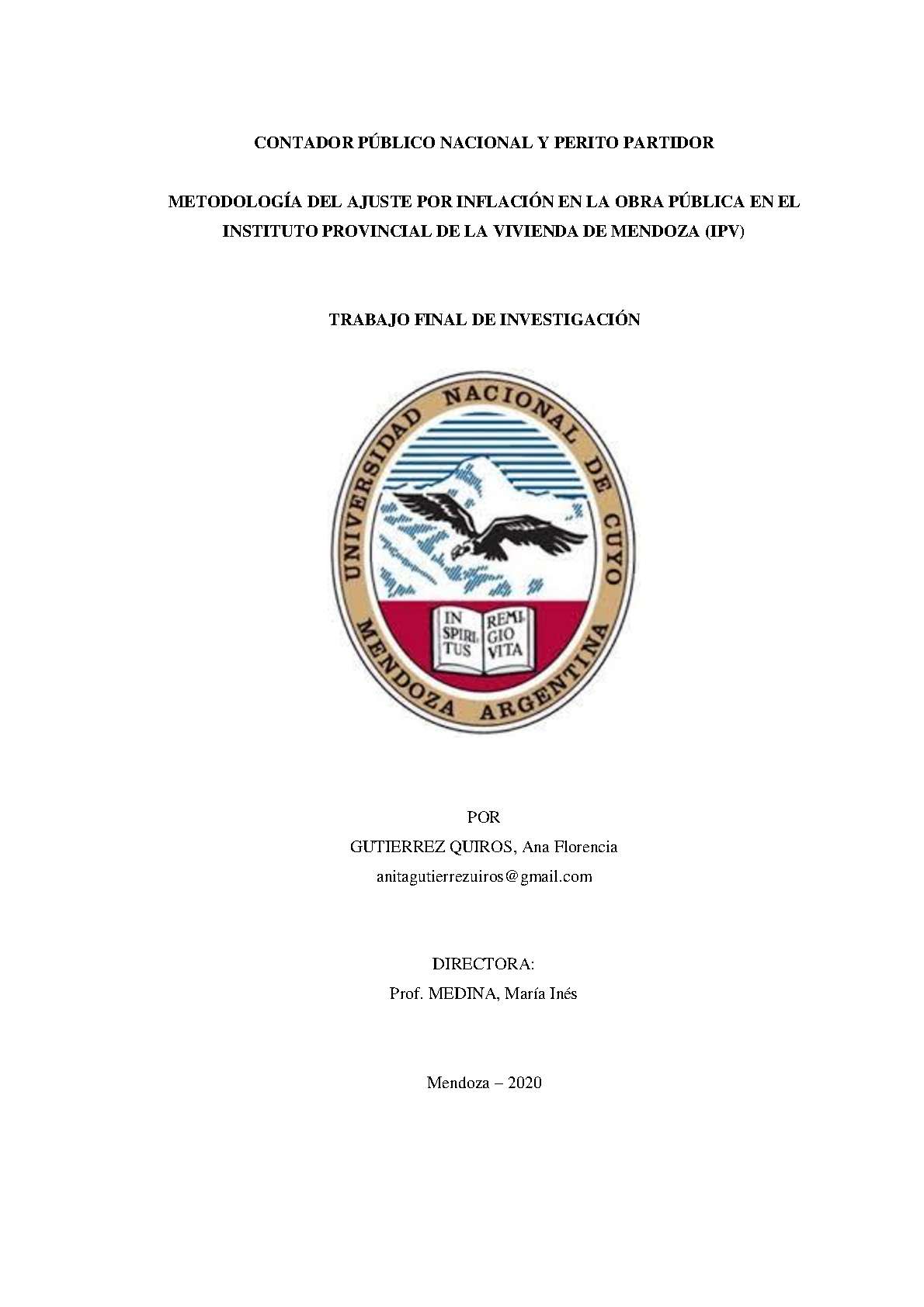 Metodología del ajuste por inflación en la obra pública en el Instituto Provincial de la Vivienda de Mendoza (IPV)