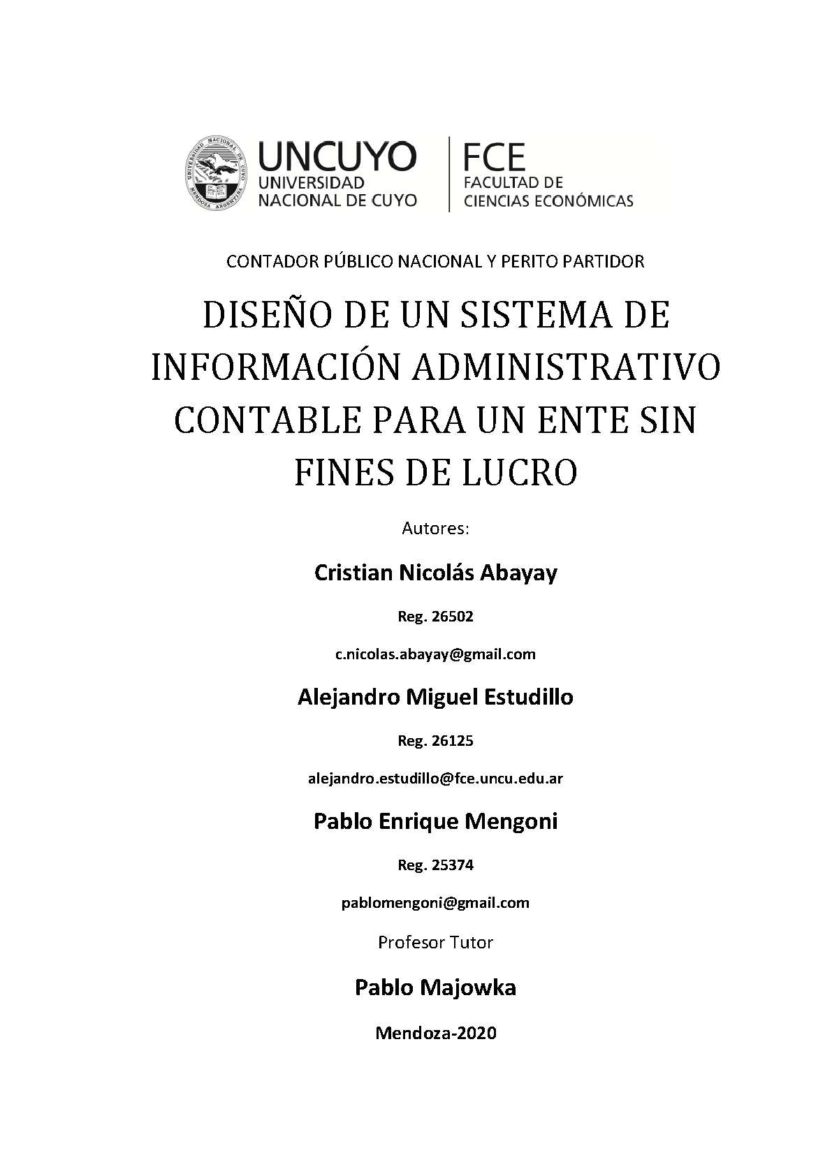 Diseño de un sistema de información administrativo contable para un ente sin fines de lucro