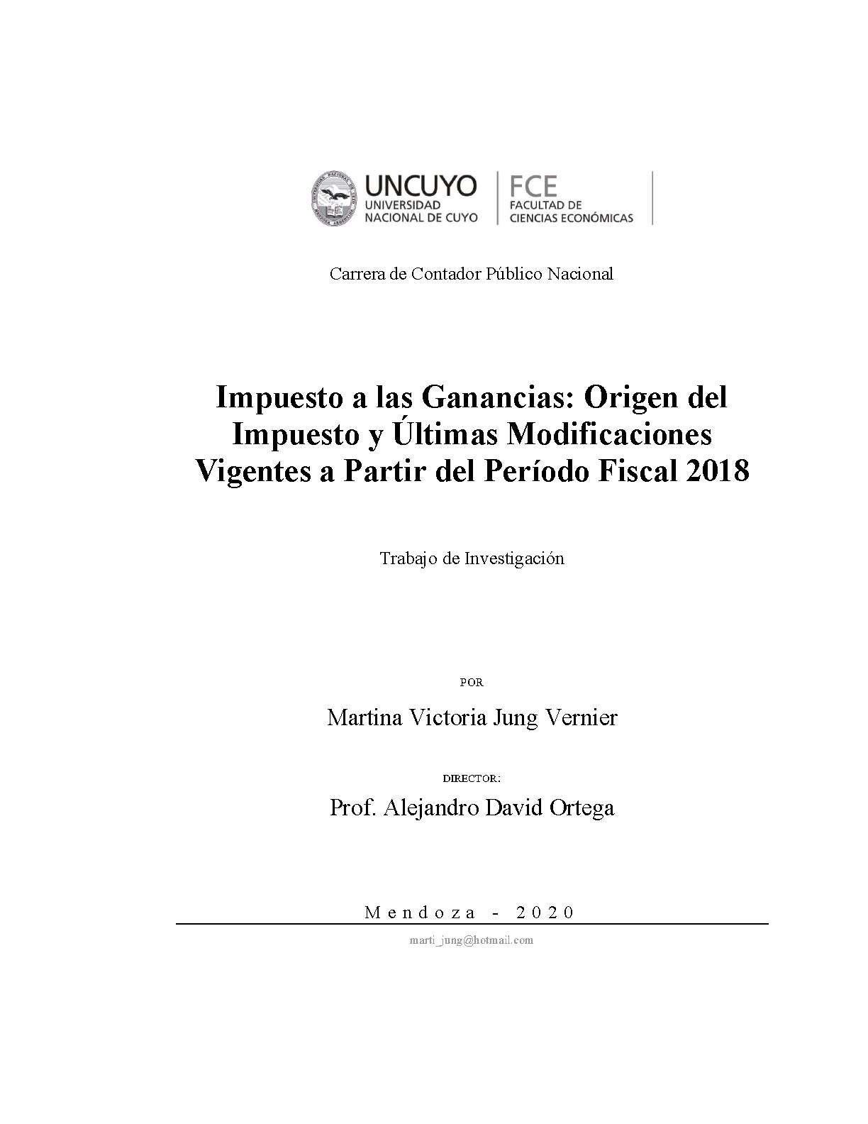 Desde su origen y a lo largo de los años las normas del Impuesto a las Ganancias han sido modificadas reiteradas veces por parte de los distintos gobiernos, haciendo difícil su comprensión. Incluso, dando lugar en algunos casos a distintas interpretaciones, y en otros dificultando laconfección de las declaraciones juradas y asesoramiento a los clientes por parte de los profesionalesen la materia. Por este motivo, es de gran importancia analizar dichas modificaciones, e intentarunificar criterios de aplicación.El presente Trabajo de Investigación tiene como objetivo exponer los primerosantecedentes del proyecto de ley, de modo que se puedan apreciar las diferencias respecto a la leyactual; ello además de analizar algunos tópicos de la reforma impositiva vigente para el períodofiscal 2018, en lo relacionado a sujeto y objeto de la ley, cambios en la imputación del período,compensación de quebrantos con ganancias y el tan controvertido ajuste por inflación impositivo.Esto conduce a concluir que, si bien es uno de los impuestos más importantes en lo relativo a la recaudación, muchas veces lo que realmente se grava son ganancias ficticias, al estar las mismas desactualizadas por la demora en el regreso de la aplicación ajuste por inflación impositivo, provocando una excesiva carga impositiva a los contribuyentes, siendo ésta difícil de soportar.