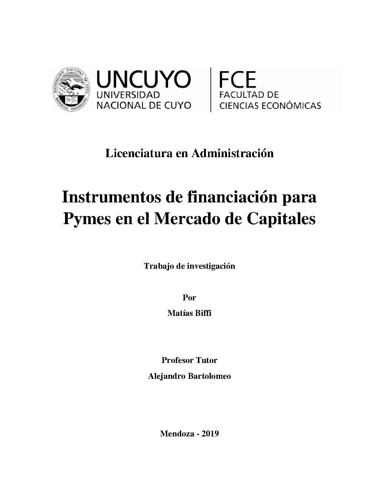 En el presente trabajo lo que se busca es hacer un análisis de cómo es actualmente la participación de las Pymes en el mercado de capitales Argentino. Mercado que en este último tiempo se ha desarrollado en mayor medida a comparación de años anteriores, lo cual es muy beneficioso para las Pymes argentinas, ya que les brinda una posibilidad más de financiamiento.