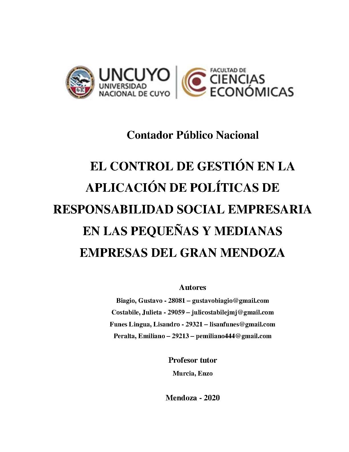 El control de la gestión en la aplicación de políticas de responsabilidad social empresaria en las pequeñas y medianas empresas del Gran Mendoza