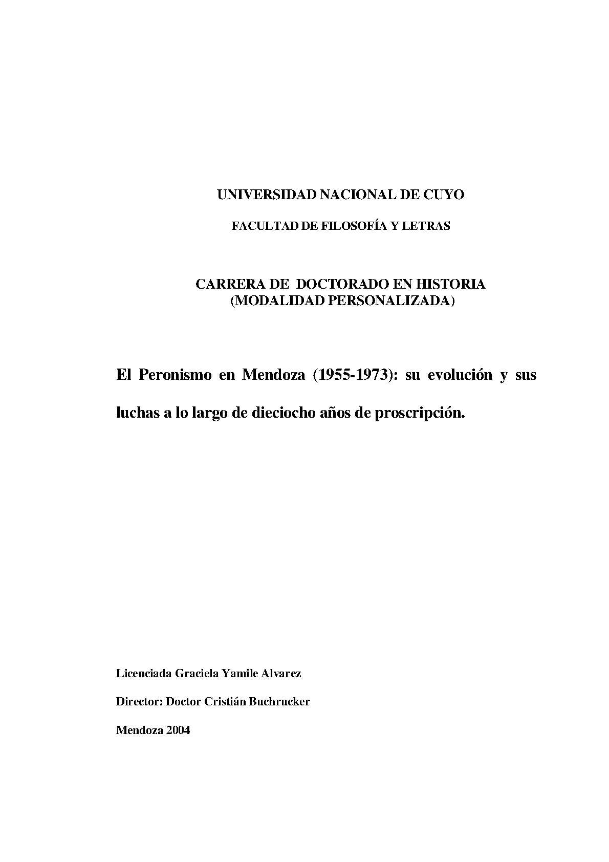 El resultado de esta investigación constituye un aporte imprescindible por cuanto hasta el momento no existe ningún otro trabajo sobre este tema, y ha quedado plasmado en esta exposición escrita compuesta de cinco capítulos que toman como eje central la “proscripción"que fue el signo característico de estos 18 años. El primer capítulo es una síntesis de la historia nacional del período, mientras que los cuatro restantes abordan la evolución del peronismo en Mendoza tomando como base los distintos gobiernos de turno.