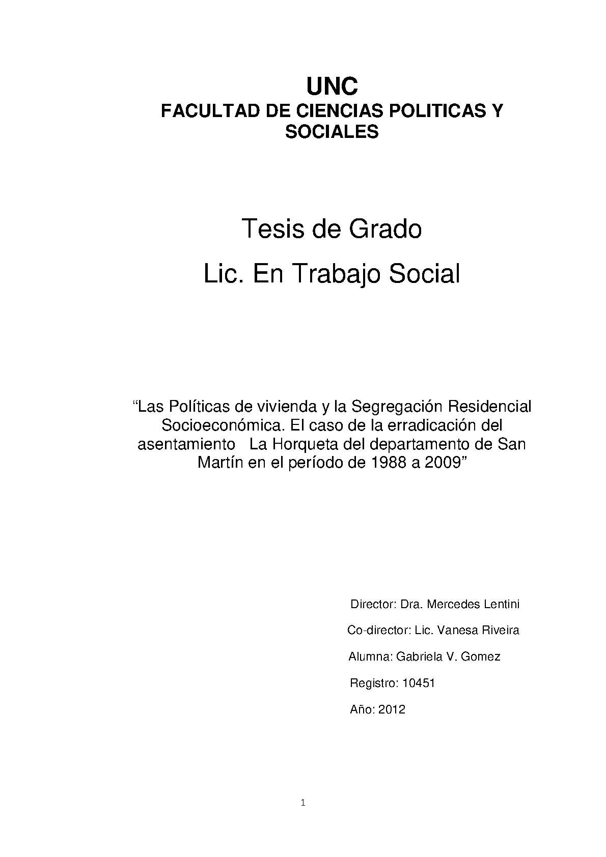 Segregación residencial - Villa inestable - Políticas de viviendas - Villa miseria - La Horqueta - Erradicación