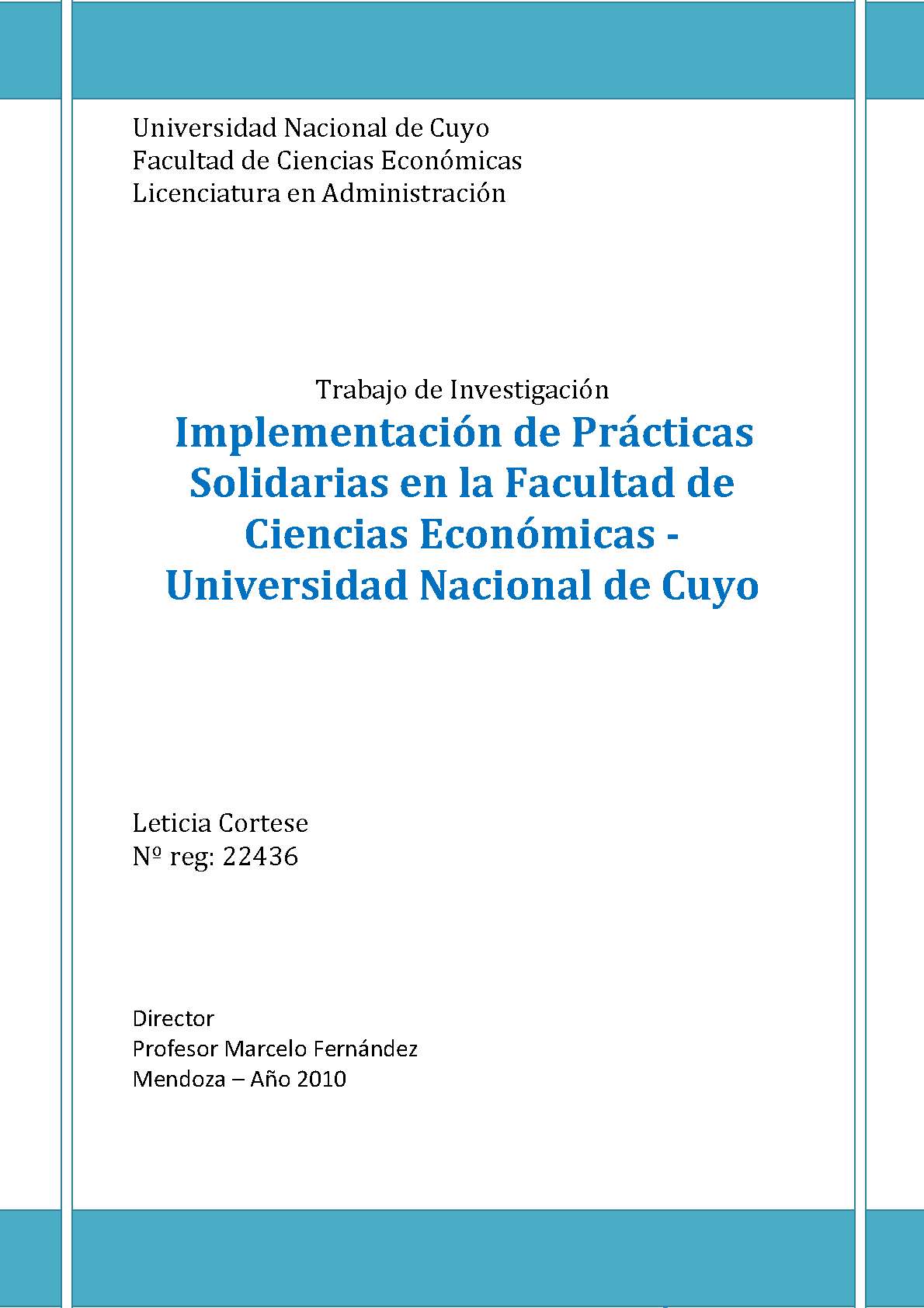 Implementación de prácticas solidarias en la Facultad de Ciencias Económicas, Universidad Nacional de Cuyo