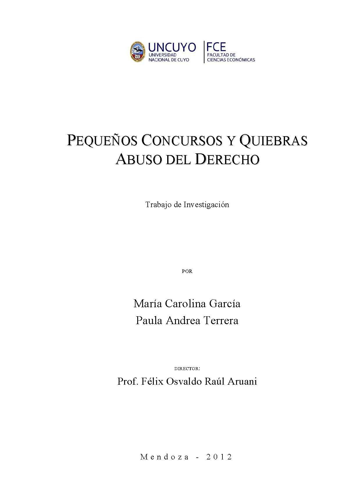 García, María Carolina; Terrera, Paula Andrea. (2012). Pequeños concursos y quiebras: abuso del derecho (Tesina de grado). Mendoza, Universidad Nacional de Cuyo. Facultad de Ciencias Económicas.