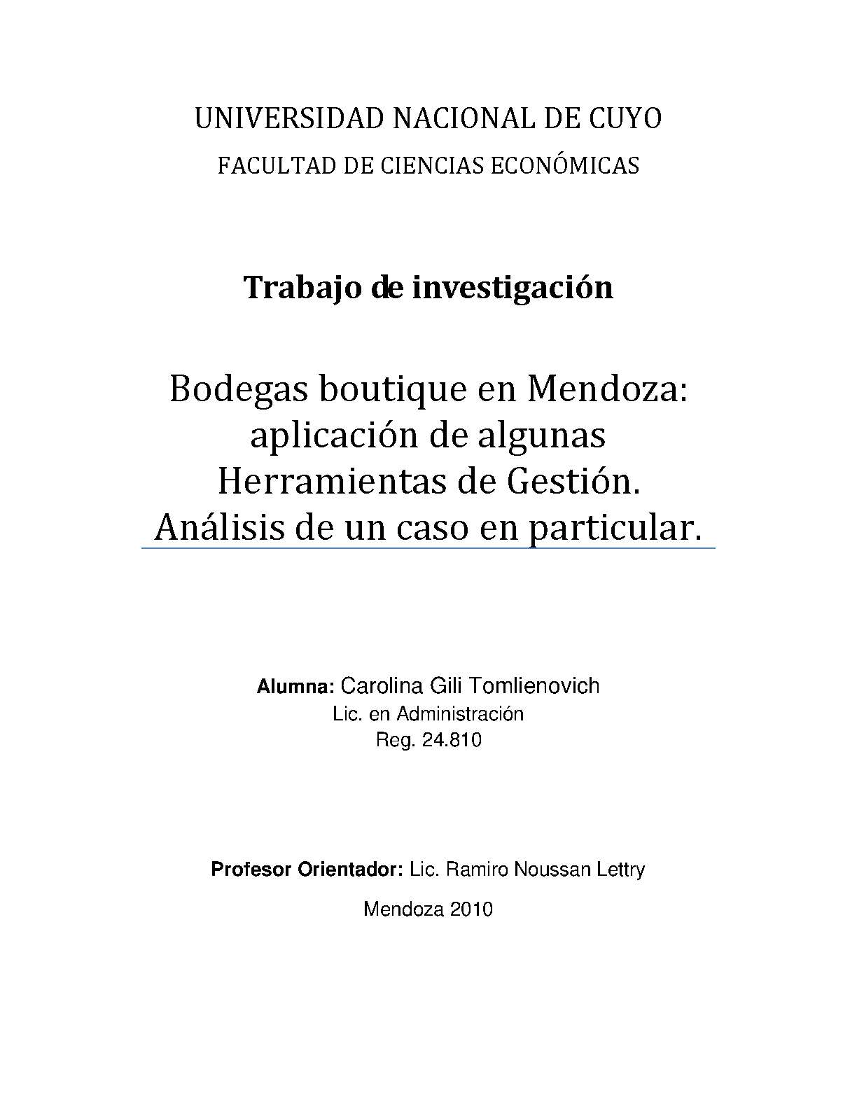 Bodegas boutique en Mendoza: aplicación de algunas herramientas de gestión