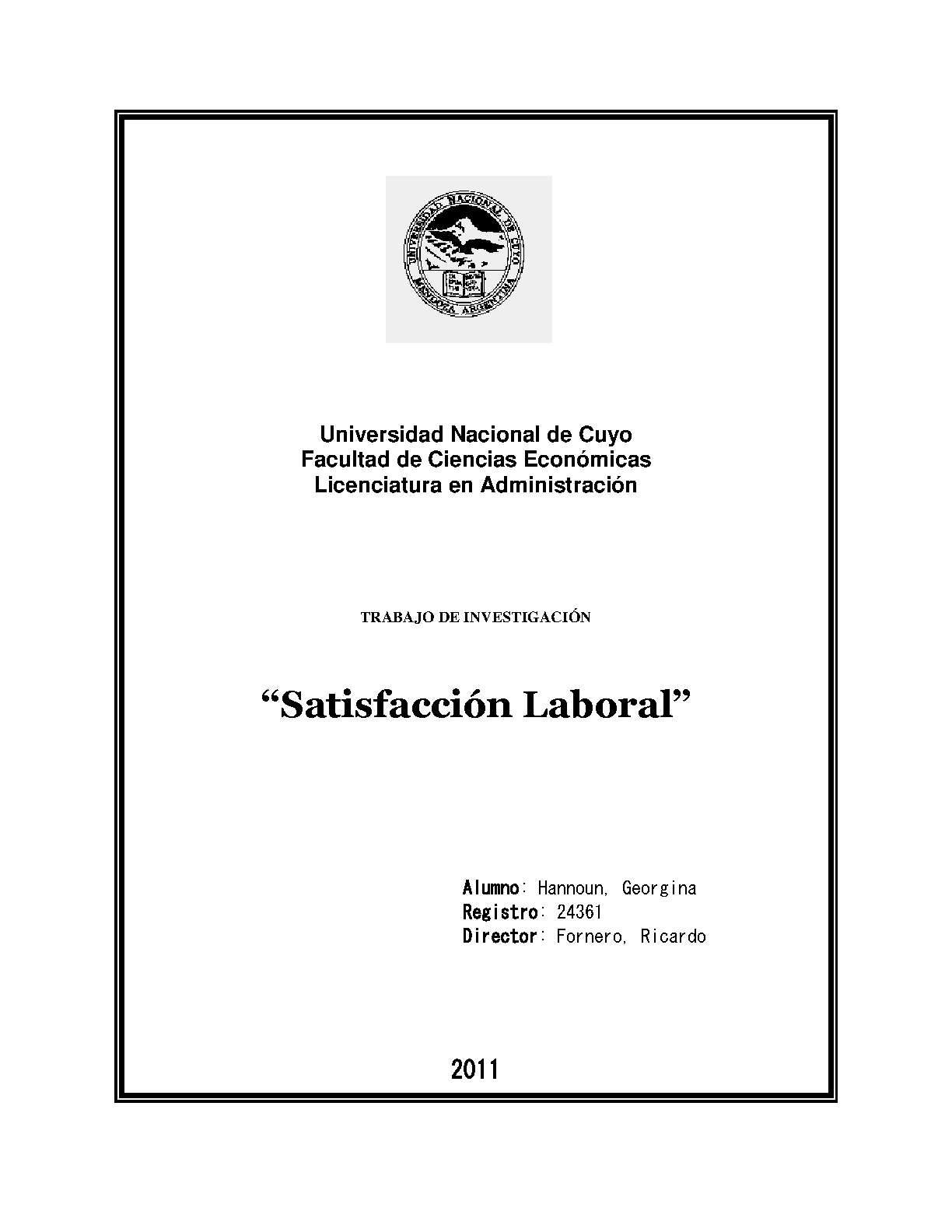 Hannoun, Georgina. (2011). Satisfacción laboral: (Trabajo final de grado). Mendoza, Universidad Nacional de Cuyo. Facultad de Ciencias Económicas.