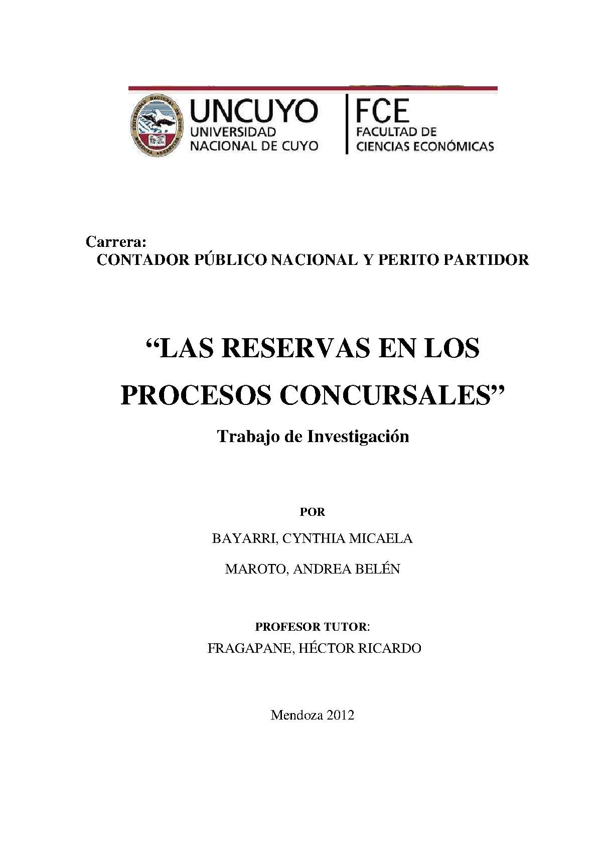 MENDOZA (ARGENTINA) - RESERVAS - CONCURSOS - PRECIOS - CRÉDITO - BIENES