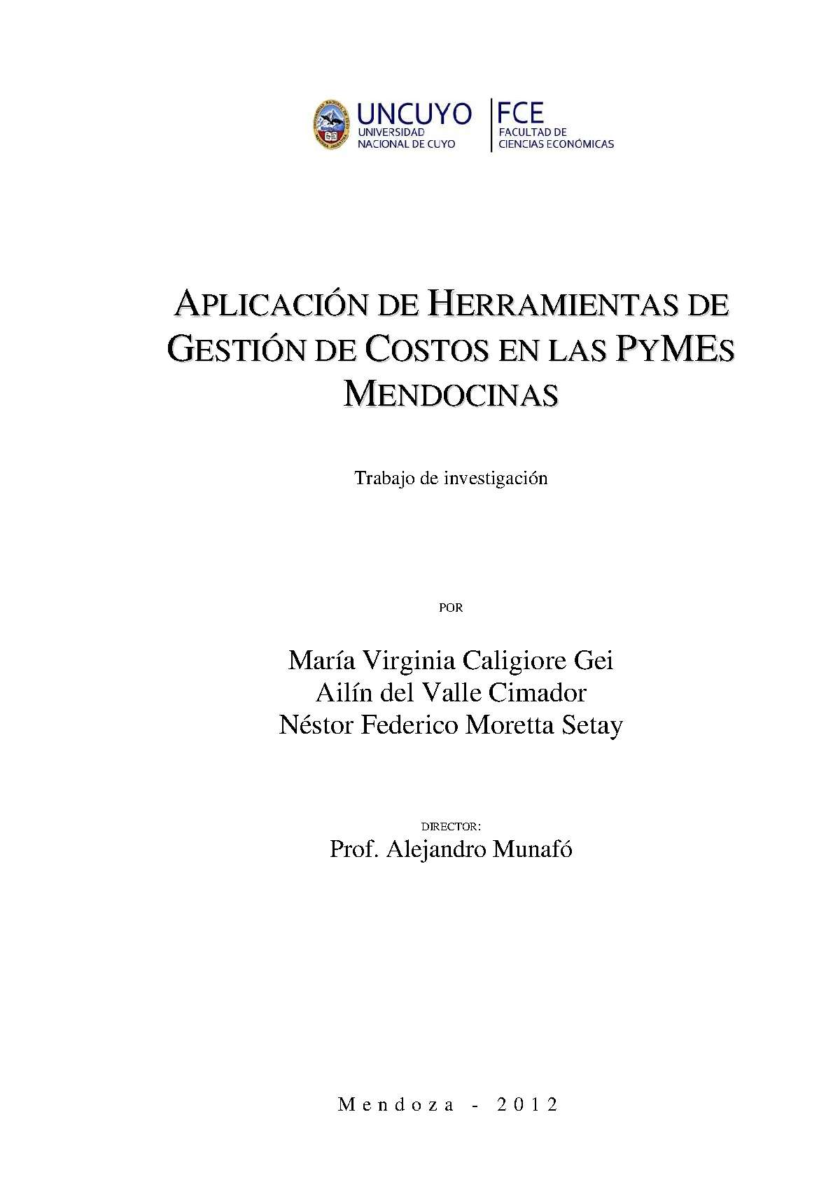 Aplicación de herramientas de gestión de costos en las PyMES mendocinas