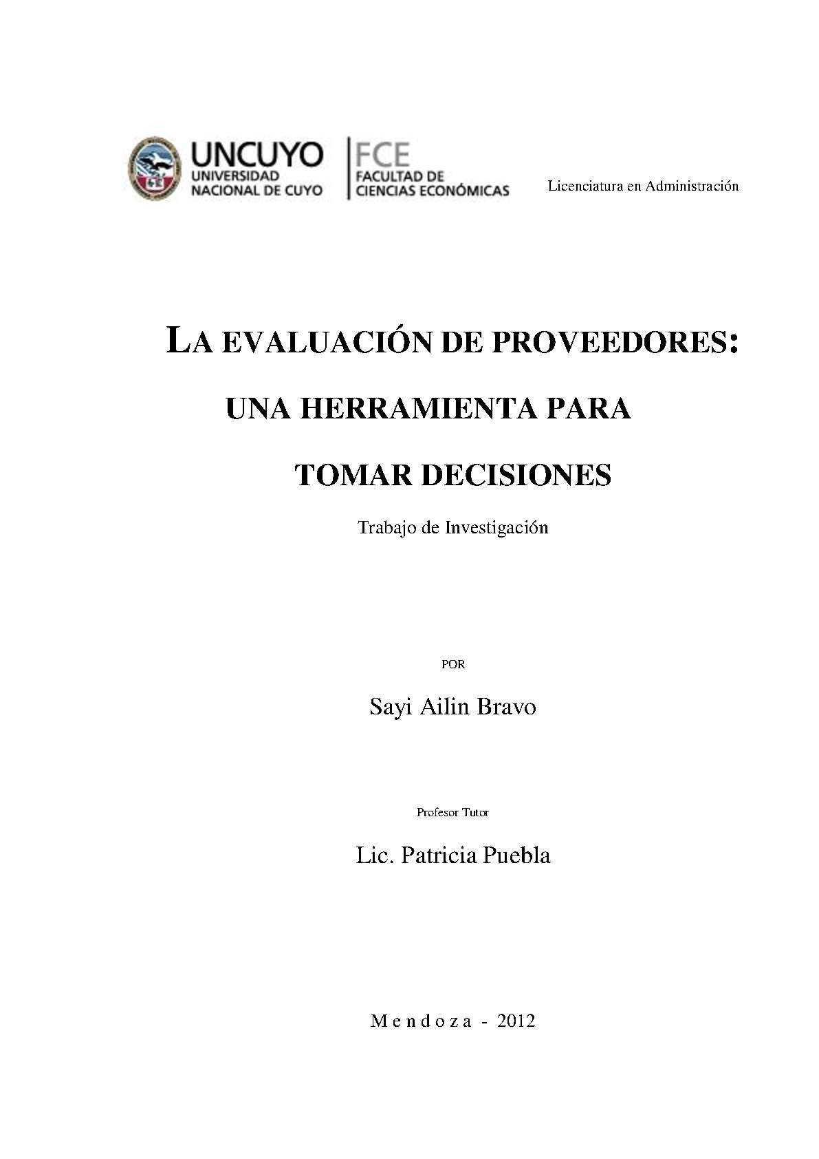 El tema del presente trabajo de investigación surge a partir de una experiencia laboral en el Área de Compras de Chandon Argentina SA, donde existen diversas cuestiones dignas de investigación pero se optó por ahondar en la Evaluación de Proveedores ya que se trata de un tema que se encuentra en auge en organizaciones innovadoras y además ha sido poco investigado, por lo que resulta más interesante. Se trata de una temática novedosa y muy útil para la toma de decisiones estratégicas.