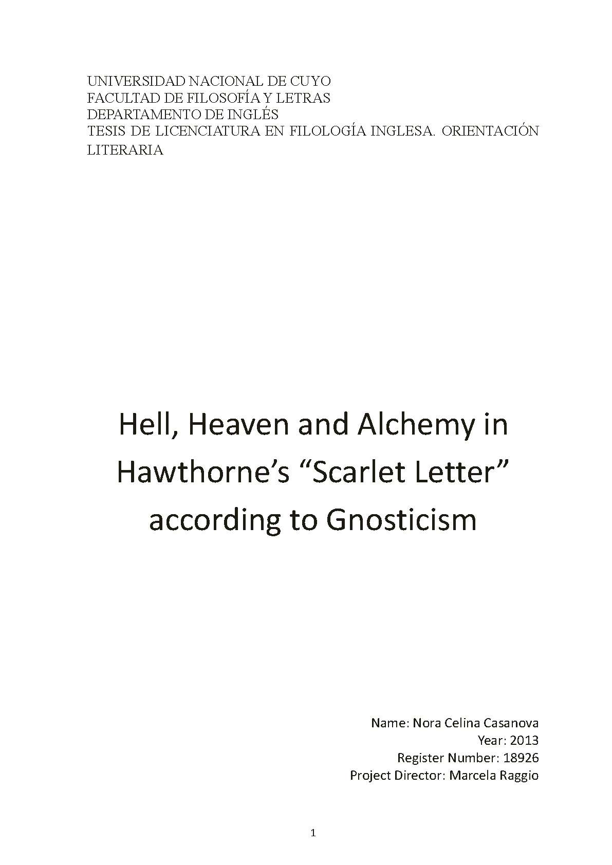 Hell, Heaven and Alchemy in Hawthorne’s “Scarlet Letter" according to Gnosticism