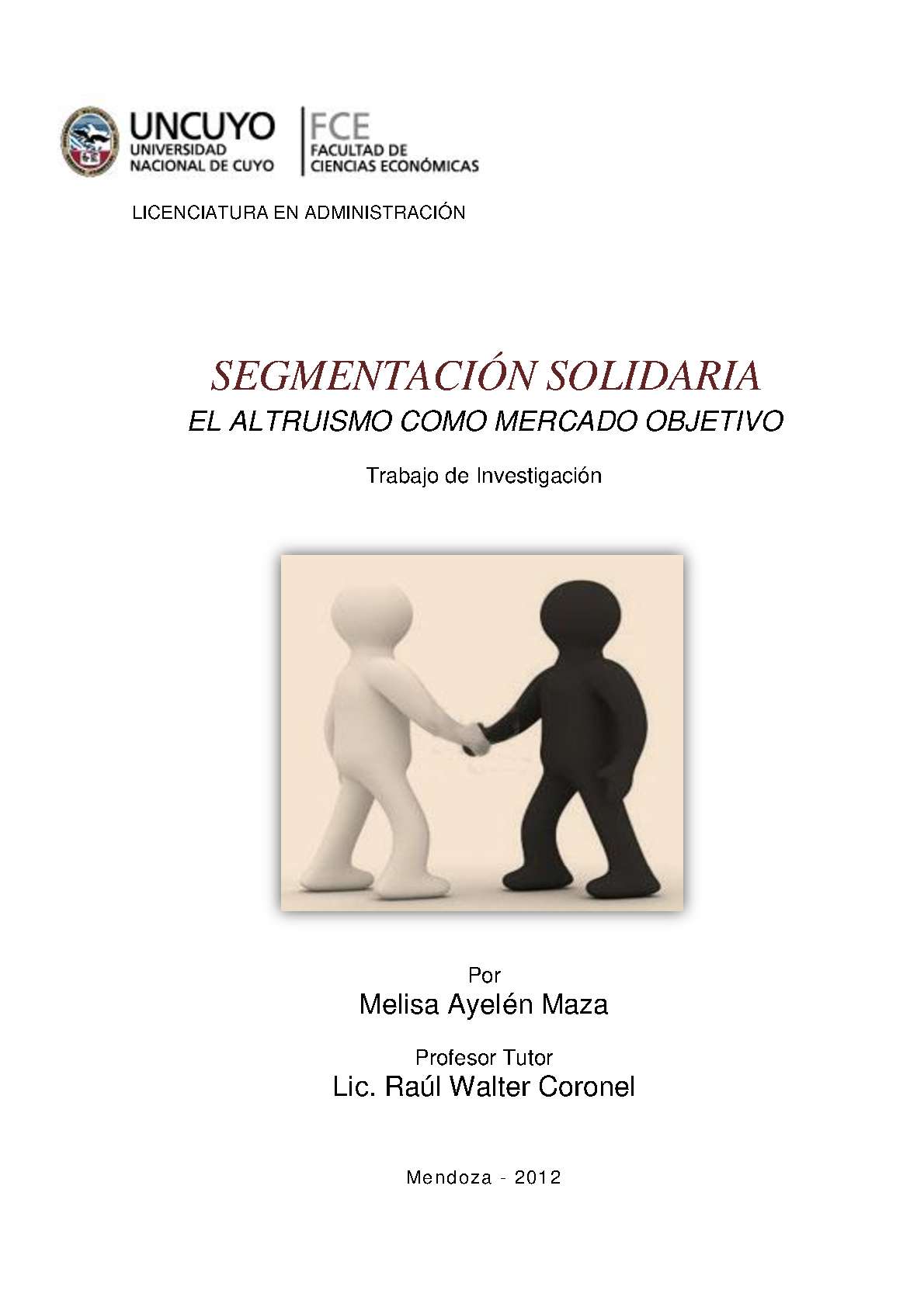 Maza, Melisa Ayelén. (2012). Segmentación solidaria: el altruismo como mercado objetivo (Trabajo final de grado). Mendoza, Universidad Nacional de Cuyo. Facultad de Ciencias Económicas.