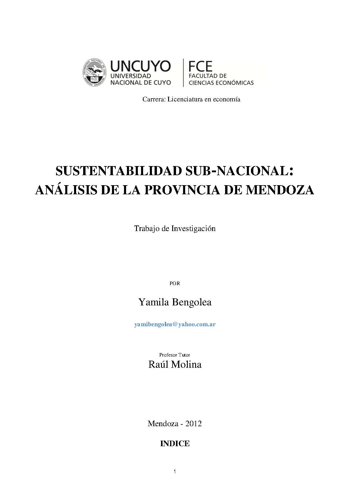 el estudio realizado en el año 2011 por Molina, Correa y Morabito. En dicho estudio se mostró la situación de la deuda pública de Mendoza (fundamentalmente del nivel y composición de la misma), así como los esfuerzos fiscales que se necesitaban realizar para que la misma sea sustentable en el tiempo.
