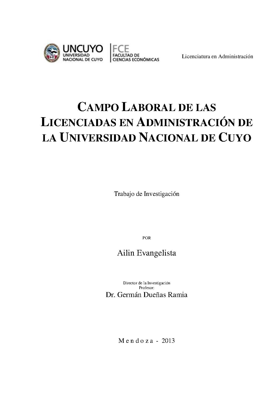 Campo laboral de las licenciadas en Administración de la Universidad Nacional de Cuyo