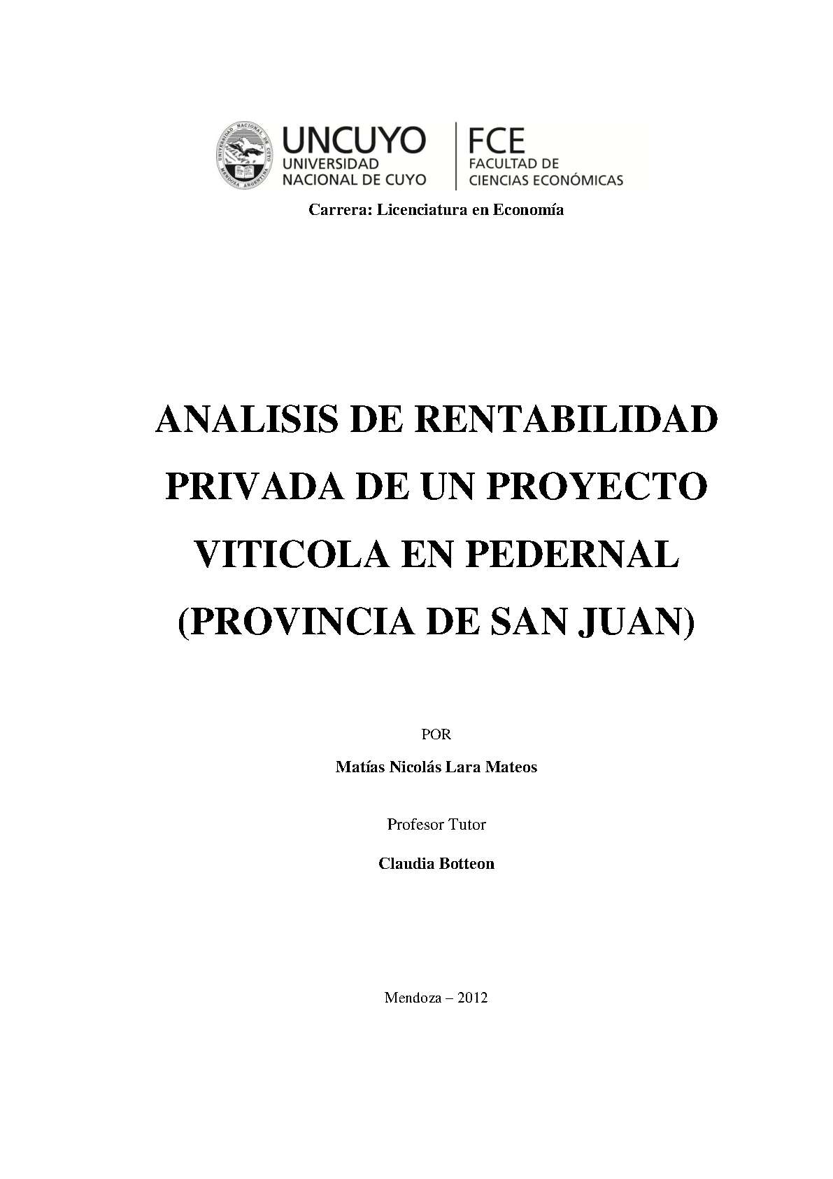 Análisis de rentabilidad privada de un proyecto vitícola en Pedernal (Provincia de San Juan)