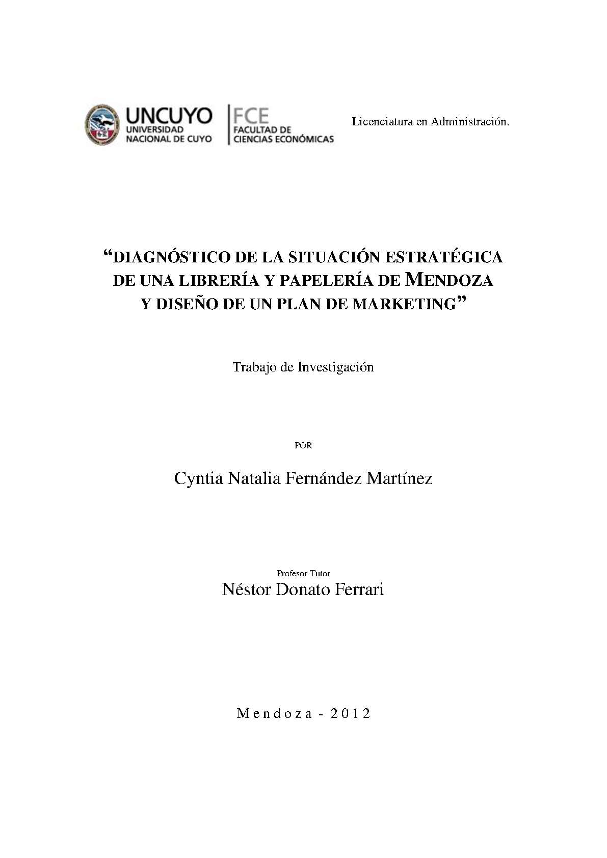 Diagnóstico de la situación estratégica de una librería y papelería de Mendoza y diseño de un plan de marketing